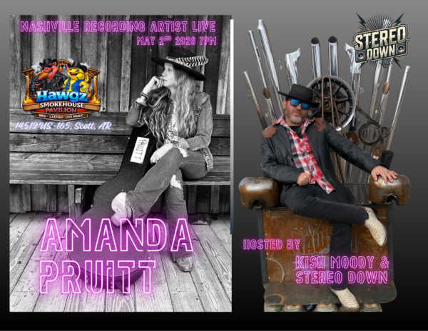 Amanda Pruitt brings Nashville country music to Hawgz Smokehouse Pavilion in Scott, Arkansas on May 2, 2026. Hosted by Kish